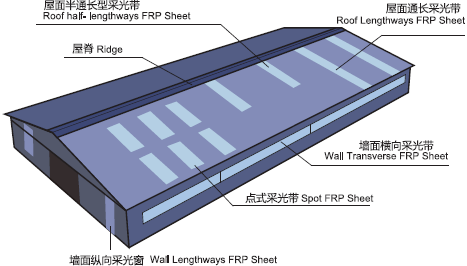 采用的方式主要有:通長采光帶,半通長采光帶,點(diǎn)式采光帶,封面橫向采光帶和封面縱向采光帶幾種方式。那么在廠房設(shè)計(jì)的時(shí)候,采光瓦的比例應(yīng)該是多少呢?