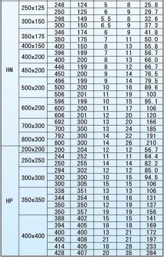 為了方便大家對(duì)h型鋼理論重量表和規(guī)格有個(gè)清晰的認(rèn)識(shí),這里我們以表格的形式為大家展出。