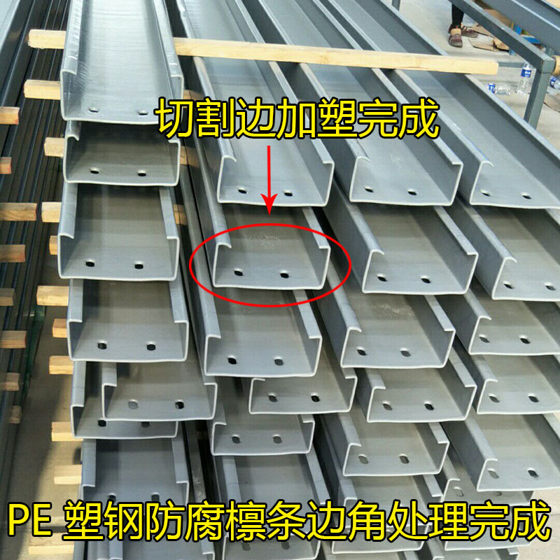 PE塑鋼防腐檁條選用 Q235 帶鋼,經(jīng)處理后表面熱熔PE 塑料。產(chǎn)品具有優(yōu)異的耐腐蝕性。在化工、酸洗、電鍍、印染、鋼廠、肥料等行業(yè)能達(dá)到 20 年以上的使用年限。