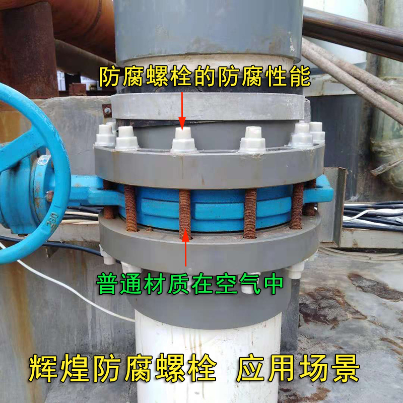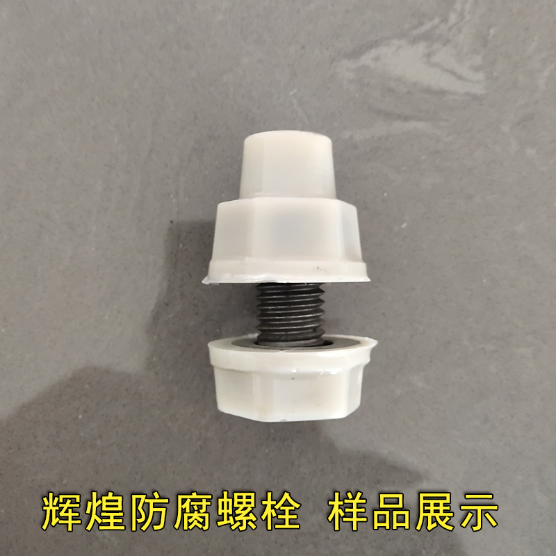 輝煌建材的防腐螺栓是一種高效防腐蝕螺栓,包括有螺栓頭、螺桿和防護(hù)帽,螺栓頭上端面設(shè)有燕尾槽,防護(hù)帽內(nèi)頂部設(shè)有與燕尾槽相配合的梯形卡塊,防護(hù)帽邊緣設(shè)有向外延展的擋邊,防護(hù)帽通過(guò)卡塊與燕尾槽配合安裝在螺栓頭上,螺桿上端為光桿段,下端為螺紋段,光桿段外表面上纏繞有軟質(zhì)材料構(gòu)成的絕緣層。輝煌防腐螺栓結(jié)構(gòu)簡(jiǎn)單,安裝使用方便,采用在螺栓頭上設(shè)置防護(hù)帽,并在螺桿光桿段外表面上纏繞軟質(zhì)材料構(gòu)成的絕緣層的設(shè)計(jì),有效地防止了腐蝕性氣體或液體與螺栓接觸而對(duì)螺栓造成腐蝕影響,提升了螺栓的防腐性能,延長(zhǎng)了使用壽命,保證了設(shè)備的安全運(yùn)行。